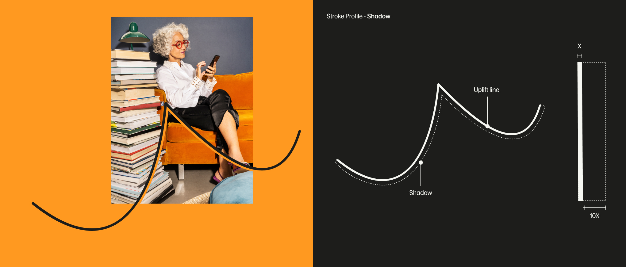 When using a shadow to overlap typography and imagery, it should be 10x the width of our Uplift device.