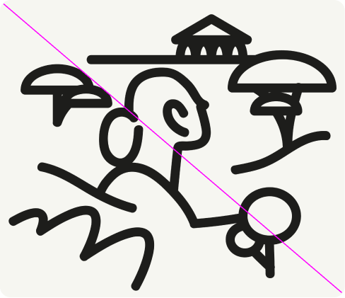 Functional illustrated icons sit seamlessly next to hero illustrations. Use the following guidance to create illustrated icons that feel stylistically in line with our visual language.